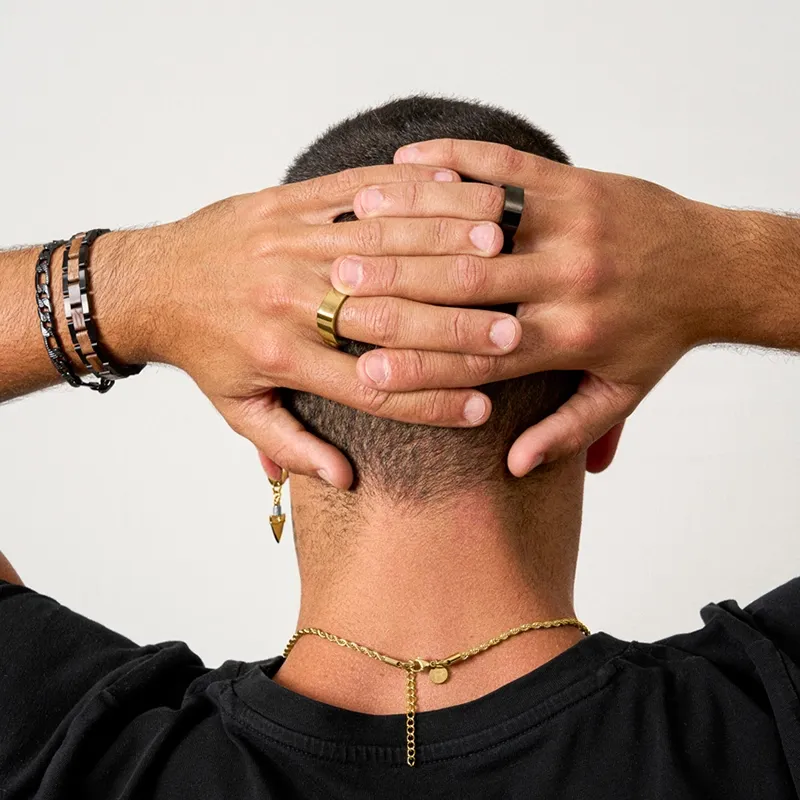 El anillo Strong en dorado para hombre es una pieza de estética moderna y presencia refinada, ideal para quienes buscan destacar con elegancia y seguridad. Diseñado con líneas rectas y una silueta robusta, transmite fuerza visual y un carácter sobrio, mientras que su acabado dorado pulido aporta un brillo sofisticado que eleva cualquier look. Fabricado en acero inoxidable de alta calidad, este anillo garantiza resistencia, durabilidad y confort para el uso diario. Su estilo minimalista, sin adornos innecesarios, lo convierte en un anillo hombre acero versátil, perfecto para combinar con otras joyas hombre o llevar como pieza única. Funciona como accesorio hombre en estilismos casuales, profesionales o incluso formales, adaptándose con naturalidad a distintos contextos. Strong dorado es una propuesta contemporánea que proyecta confianza, elegancia y una imagen cuidada, ideal para hombres que valoran el diseño limpio y la excelencia en los acabados.
