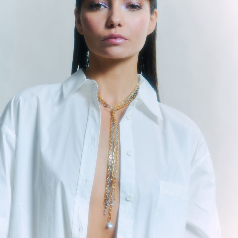 Una oda a la feminidad más vanguardista. Las delicadeza de las perlas, un icono de la joyería tradicional, se entremezcla con la rotundidad de las cadenas para crear joyas con carácter que reinterpretan el concepto clásico.