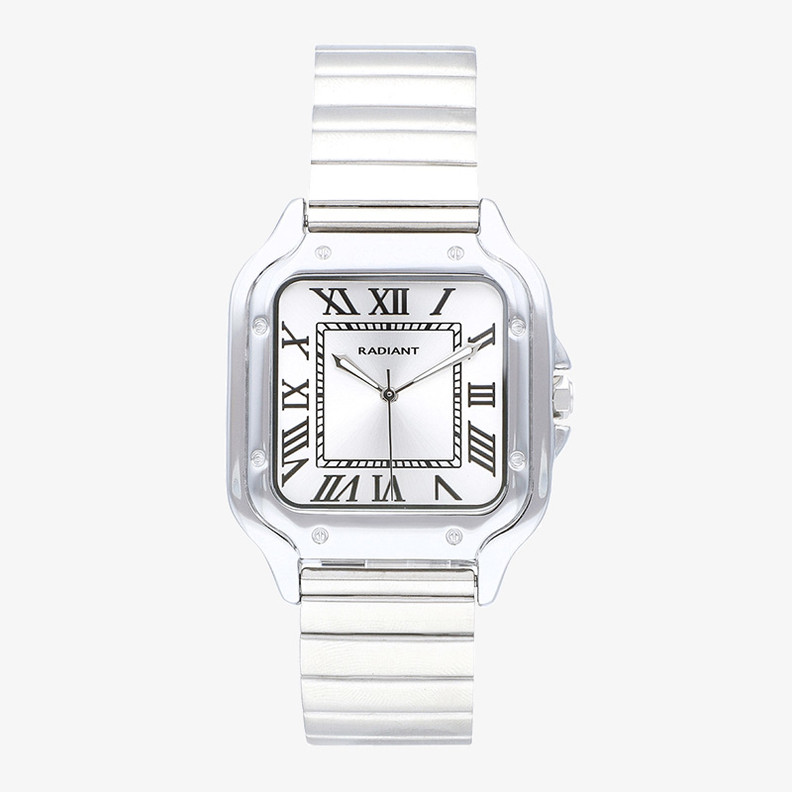Un reloj minimalista y versátil de la colección Chris Him. Fabricado íntegramente en acero inoxidable, cuenta con una caja cuadrada plateada y una esfera blanca con números romanos. Su diseño sobrio y su brazalete ajustable lo hacen perfecto para cualquier ocasión.